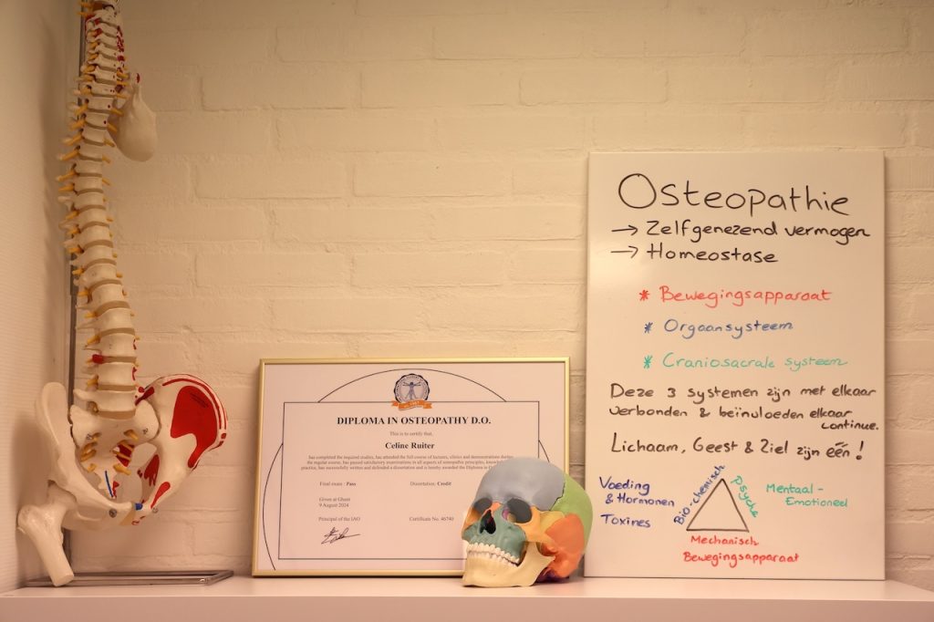 Binnen de osteopathie gaat men uit van drie systemen die elkaar beïnvloeden. Het craniosacrale systeem (schedel-wervelkanaal-heiligbeen-zenuwstelsel-hersenvochtcirculatie), viscerale systeem (orgaanstelsel) en het pariëtale systeem (bewegingsapparaat) beïnvloeden elkaar. Tijdens het onderzoek en de behandeling wordt gekeken naar het functioneren van alle drie de systemen en de onderlinge samenhang.